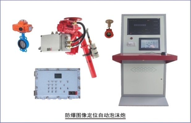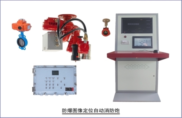防爆图像型定位自动消防炮由图像定位器、防爆消防炮、防爆控制盘、防爆红紫外探测器、主机等设备组成。系统将图像安全监控和火灾探测系统、图像定位系统有效的结合,能全天候自动监控被保护区域,如发生火情,系统将立即启动,在空间范围内对火源进行智能扫描,确定火源的定位坐标,中央控制器智能识别后,发出火警信号,同时启动水泵、打开阀门,灭火装置对准火源进行射水灭火,直至火源扑灭。若有新的火源,灭火装置将重复上述过程,待保护范围内全部火源被扑灭后重新回到监控状态。系统采用防爆结构设计,满足国家相关标准要求,适用于工矿企业、石油、化工等高危场所。